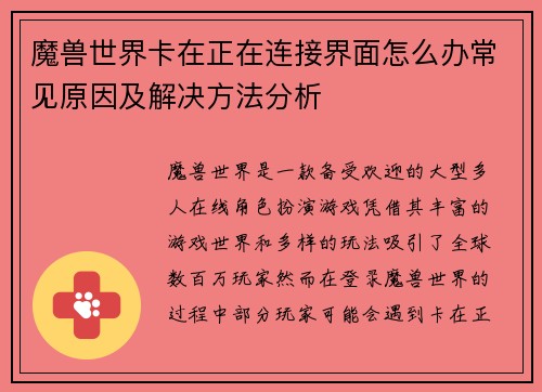 魔兽世界卡在正在连接界面怎么办常见原因及解决方法分析